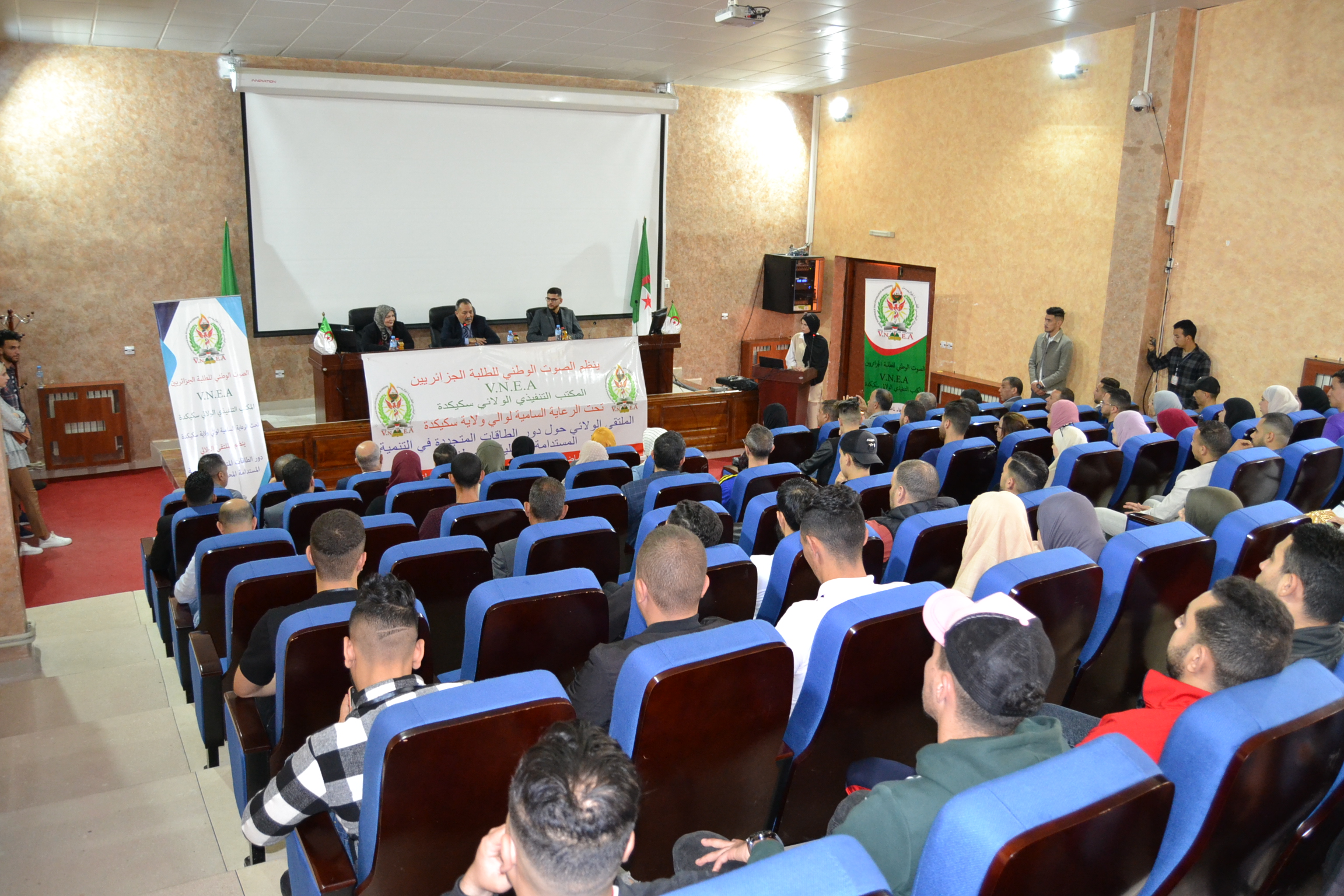 أشرف السيد مدير الجامعة البروفسور بوفندي توفيق صباح يوم الأربعاء 11 ماي 2022 على إفتتاح الملتقى الولائي حول دور الطاقات المتجددة في التنمية المستدامة المحلية و الوطنية تحت الرعاية السامية لوالي ولاية سكيكدة و من تنظيم المكتب التنفيذي الولائي للتنظيم الطلابي الصوت الوطني للطلبة الجزائريين VNEA.