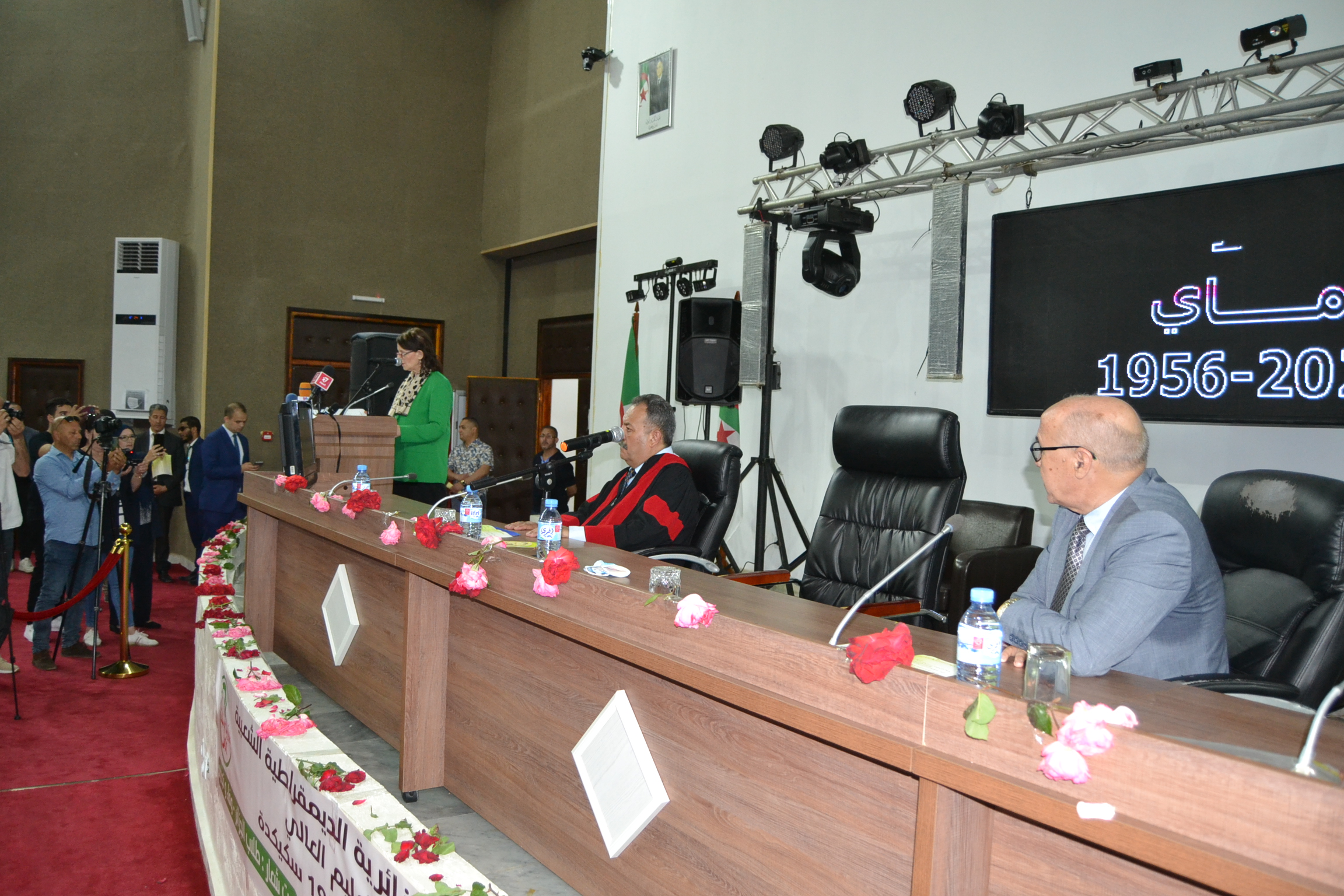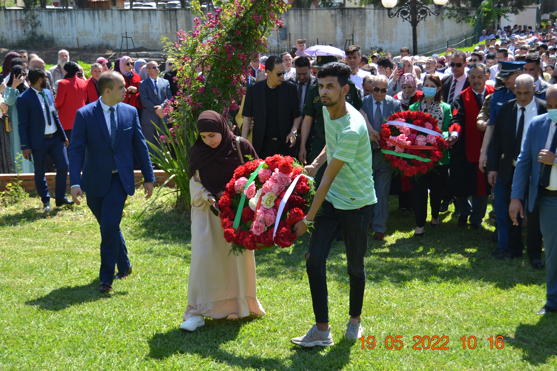توافد طلبة جامعة 20أوت 1955- سكيكدة صباح اليوم 19 ماي 2022 إلى ساحة الجامعة أمام النصب التذكاري تلبية لدعوة السيد مدير الجامعة للإحتفال بالذكرى 66 ليوم الطالب داخل الحرم الجامعي، في حضور السلطات الولائية الأمنية و العسكرية و المدراء التنفيذيين للولاية على رأسهم السيدة والي ولاية سكيكدة و رئيس المجلس الشعبي الولائي و نواب المجلس الشعبي الوطني عن الولاية الى جانب الطاقم الاداري للجامعة برئاسة السيد مدير الجامعة .