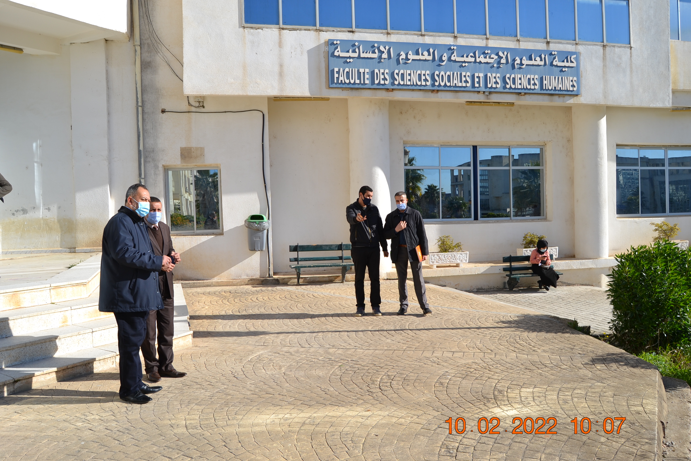 .قام السيد مدير الجامعة البروفيسور بوفندي توفيق اليوم 10 فيفري 2022 بزيارة تفقدية إلى كلية العلوم الإنسانية و الإجتماعية لمتابعة سير إمتحانات الدفعة الثانية و الإستماع لإنشغالات الأساتذة و العمال