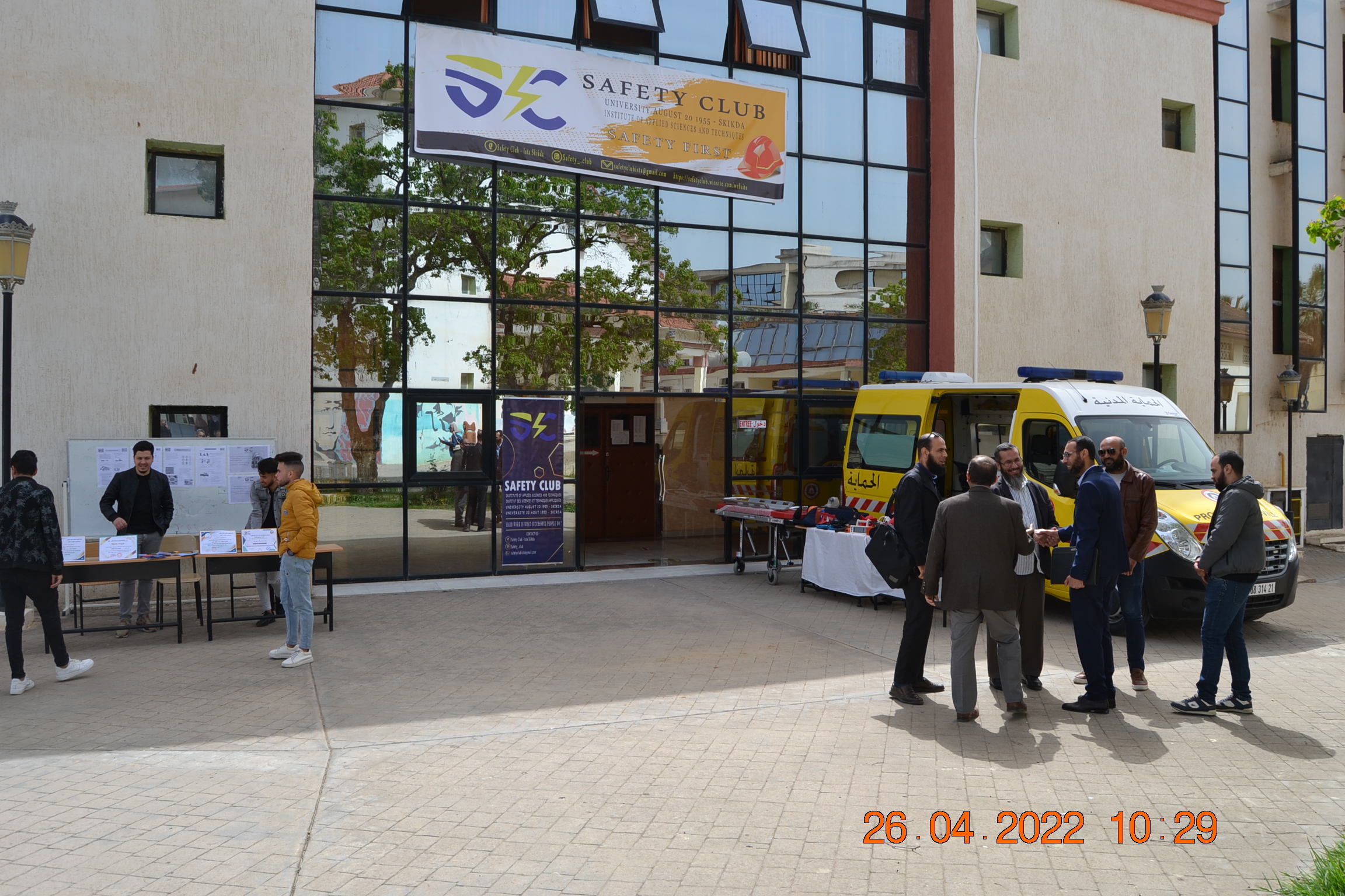 نظم النادي العلمي safety club بالتنسيق مع معهد العلوم و التقنيات التطبيقية لجامعة سكيكدة ISTA صباح اليوم 26 افريل 2022 ملتقى علمي موسوم : اليوم العالمي للصحة و الأمن في العمل و هذا إحتفالا بهذه المناسبة العالمية المصادفة لـلــثـامن و العشرين من شهر أفريل من كل سنة.