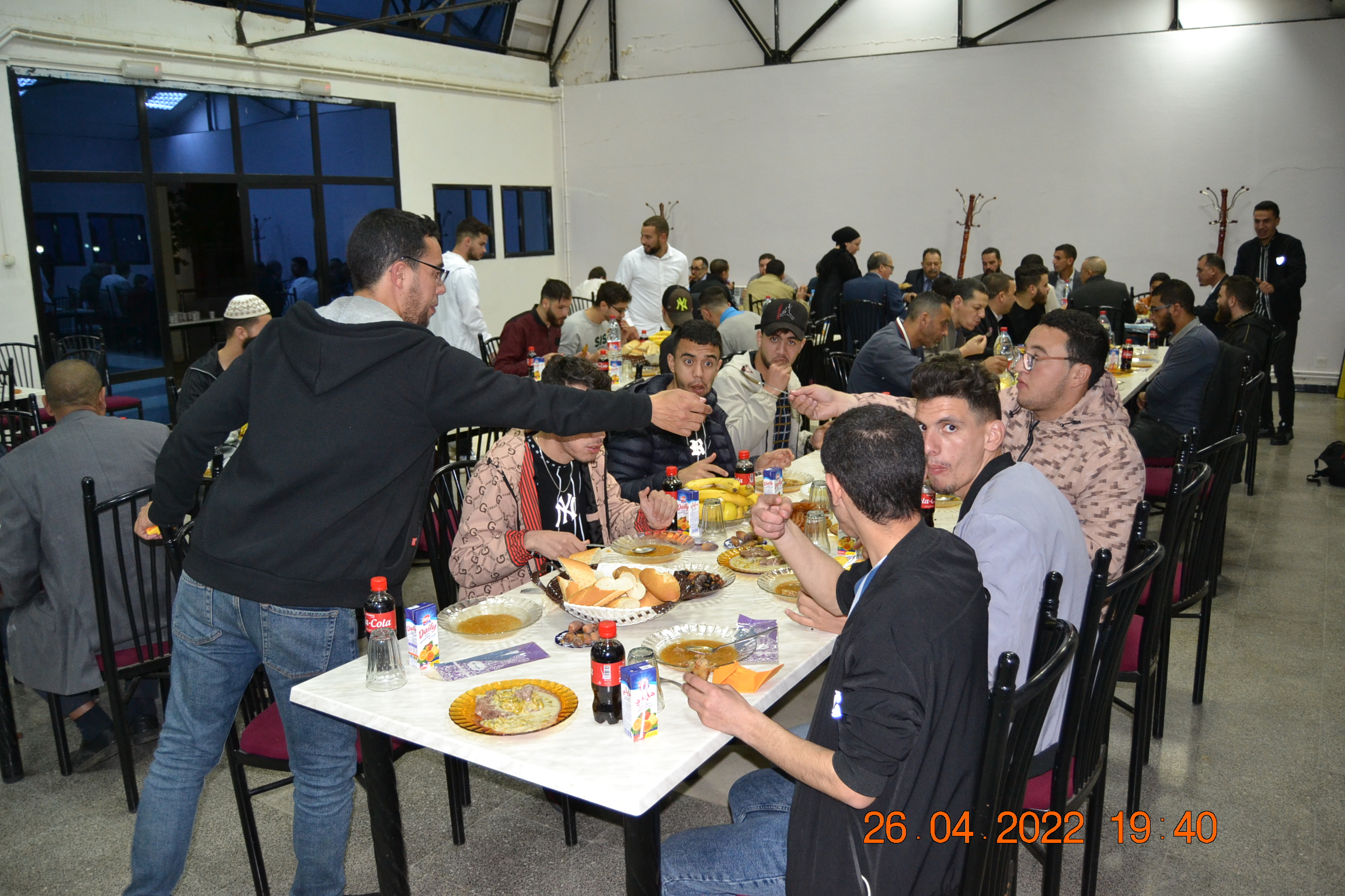 نظم مساء أمس الثلاثاء  26 افريل 2022 التنظيم الطلابي الإتحاد العام الطلابي الحر UGEL  إفطارا جماعيا بمطعم الموظفين للجامعة  بحضور الطاقم الإداري لجامعة 20 أوت 1955- سكيكدة على رأسه السيد مدير الجامعة البروفسيور  بوفندي  توفيق و عدد من الأساتذة ، أعضاء التنظيم الطلابي من طلبة و طالبات إلى جانب بعض الشخصيات التي تم إستضافتها من قبل التنظيم الطلابي.