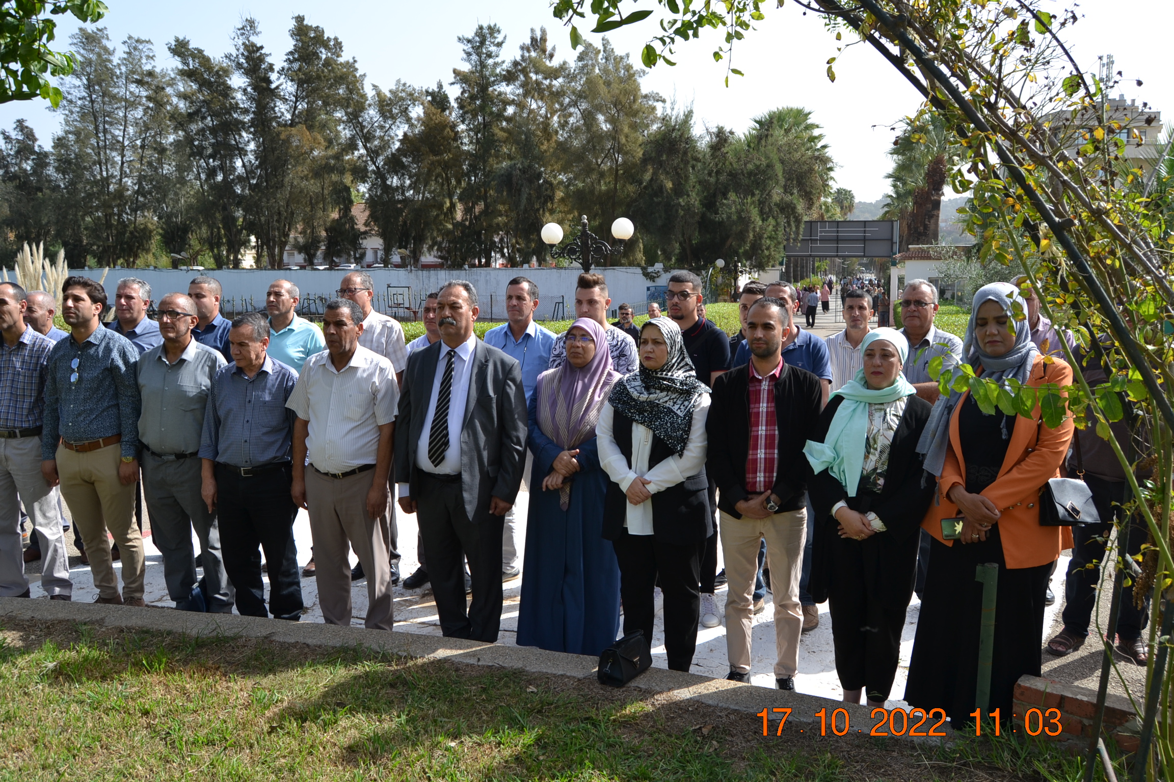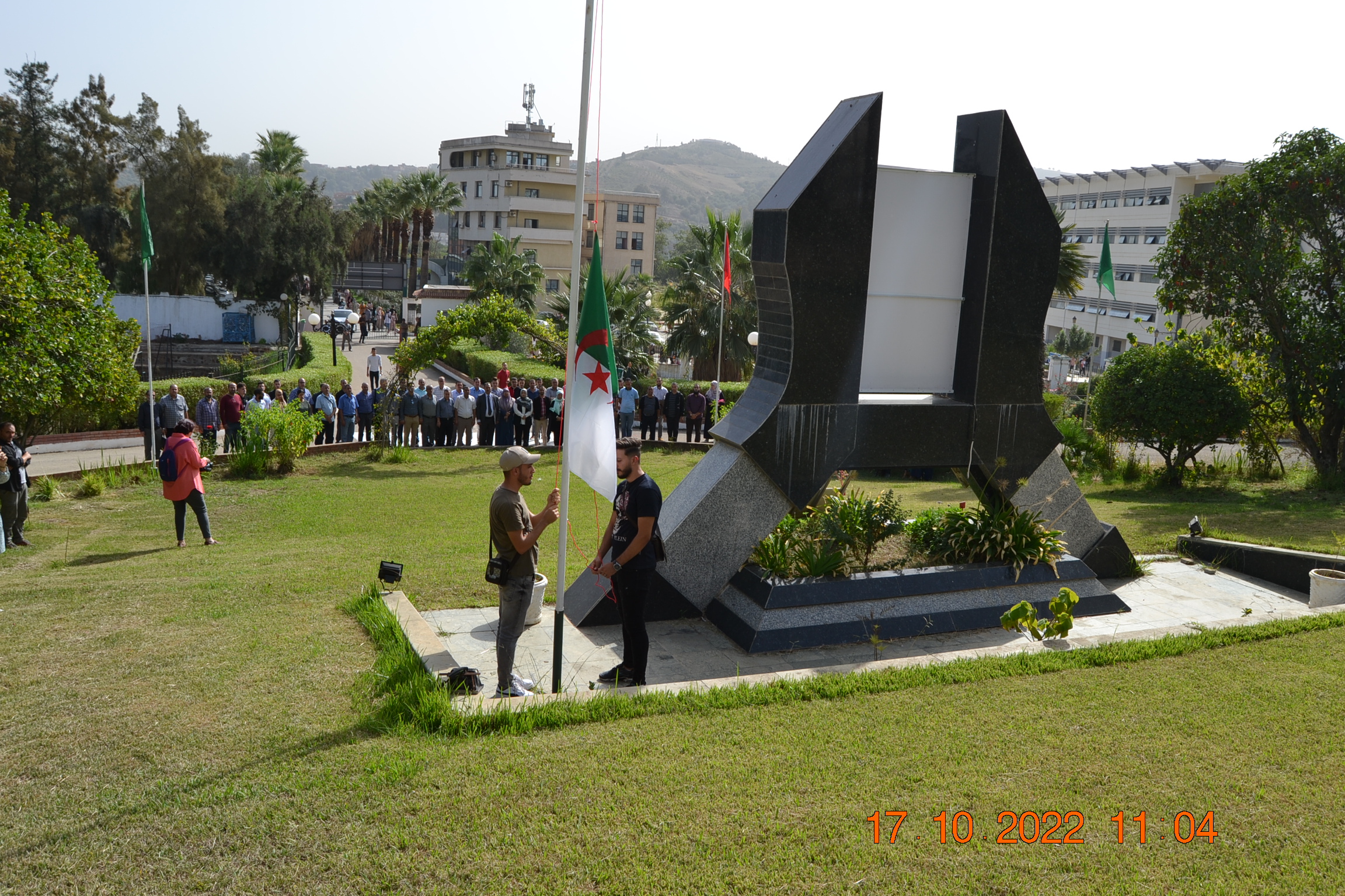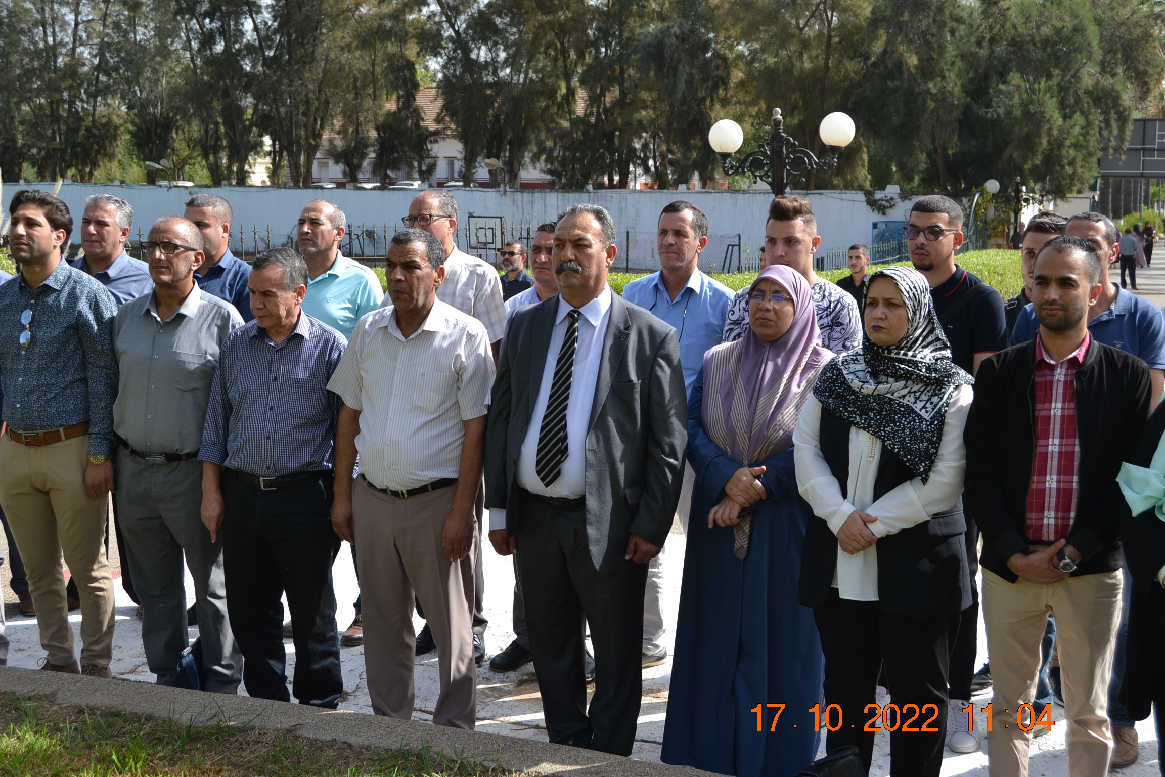 تذكيرا بإحدى المحطات الفاصلة في تاريخ الثورة الجزائرية و في الذكرى الواحدة و الستون لمظاهرات 17 أكتوبر 1961 و مجازر نهر السين بباريس في حق المتظاهرين الجزائريين وقف صباح اليوم الإثنين ممثلي التنظيمات الطلابية ، السيدات و السادة عمداء الكليات والسادة نواب مدير الجامعة على رأسهم السيد مدير الجامعة الى جانب بعض الطلبة وقفة للذكرى و الترحم على أرواح ضحايا هذه المظاهرات.