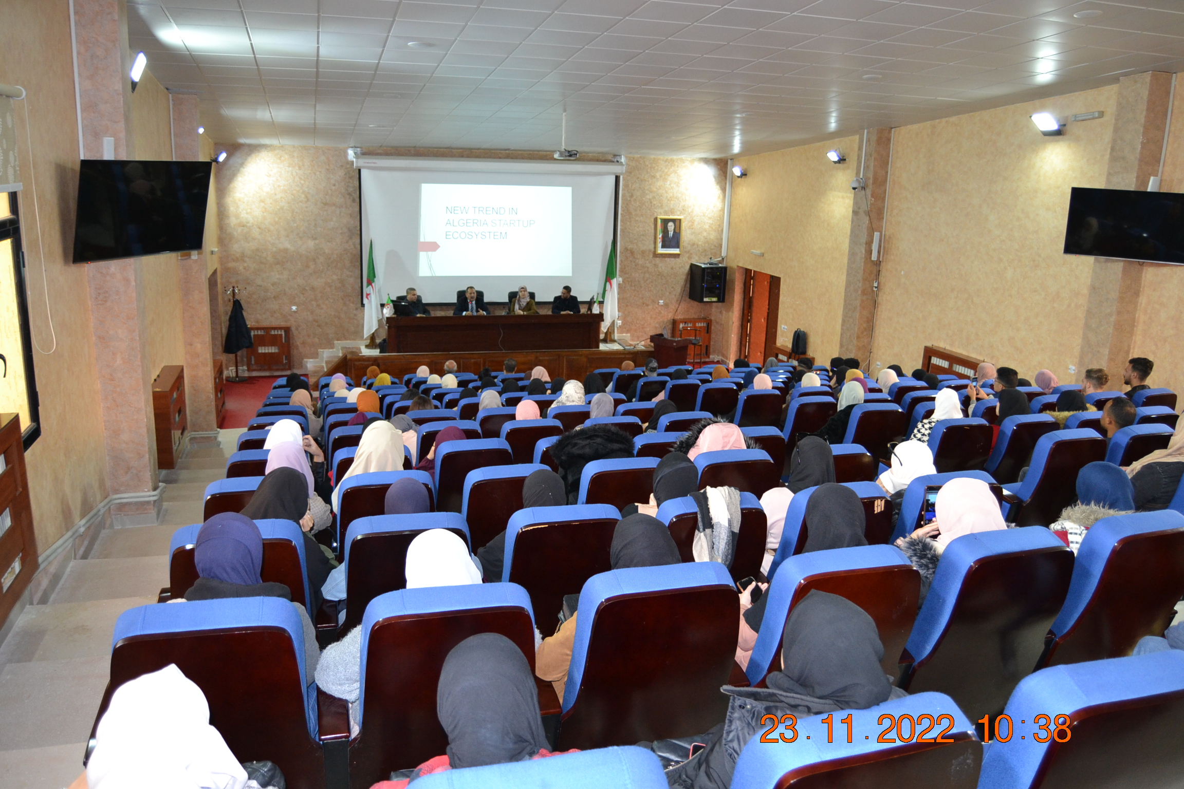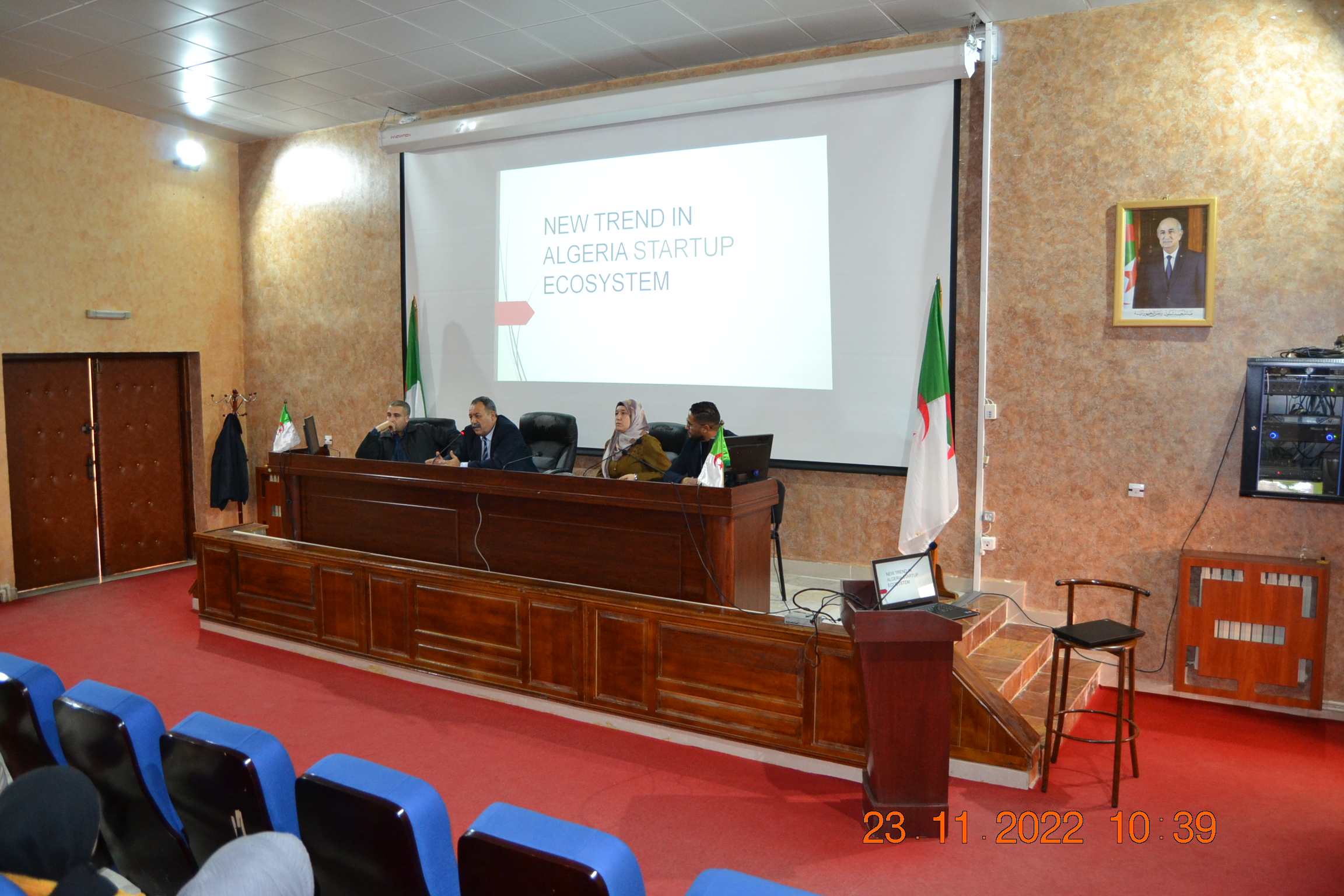 في كلمته شجع السيد مدير الجامعة الطلبة على ولوج عالم المؤسسات الناشئة لما تحمله الخطوة من فائدة على صاحب الفكرة ليكون من رواد الاعمال مستقبلا و يخلق فرص عمل أخرى كما يساهم في ترتيب الجامعة و يدعم الاقتصاد الوطني .