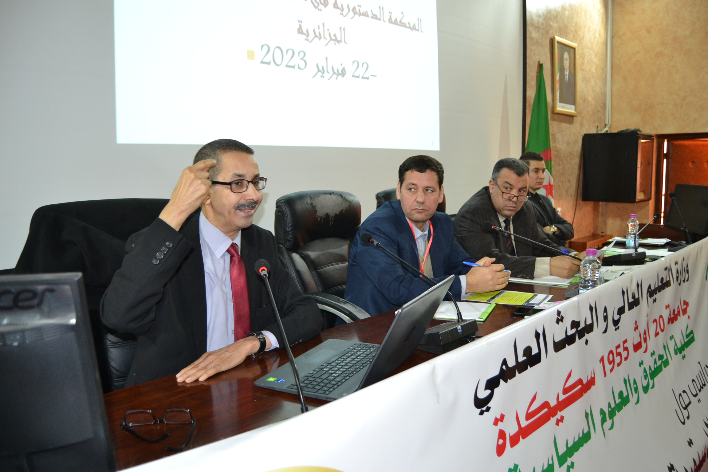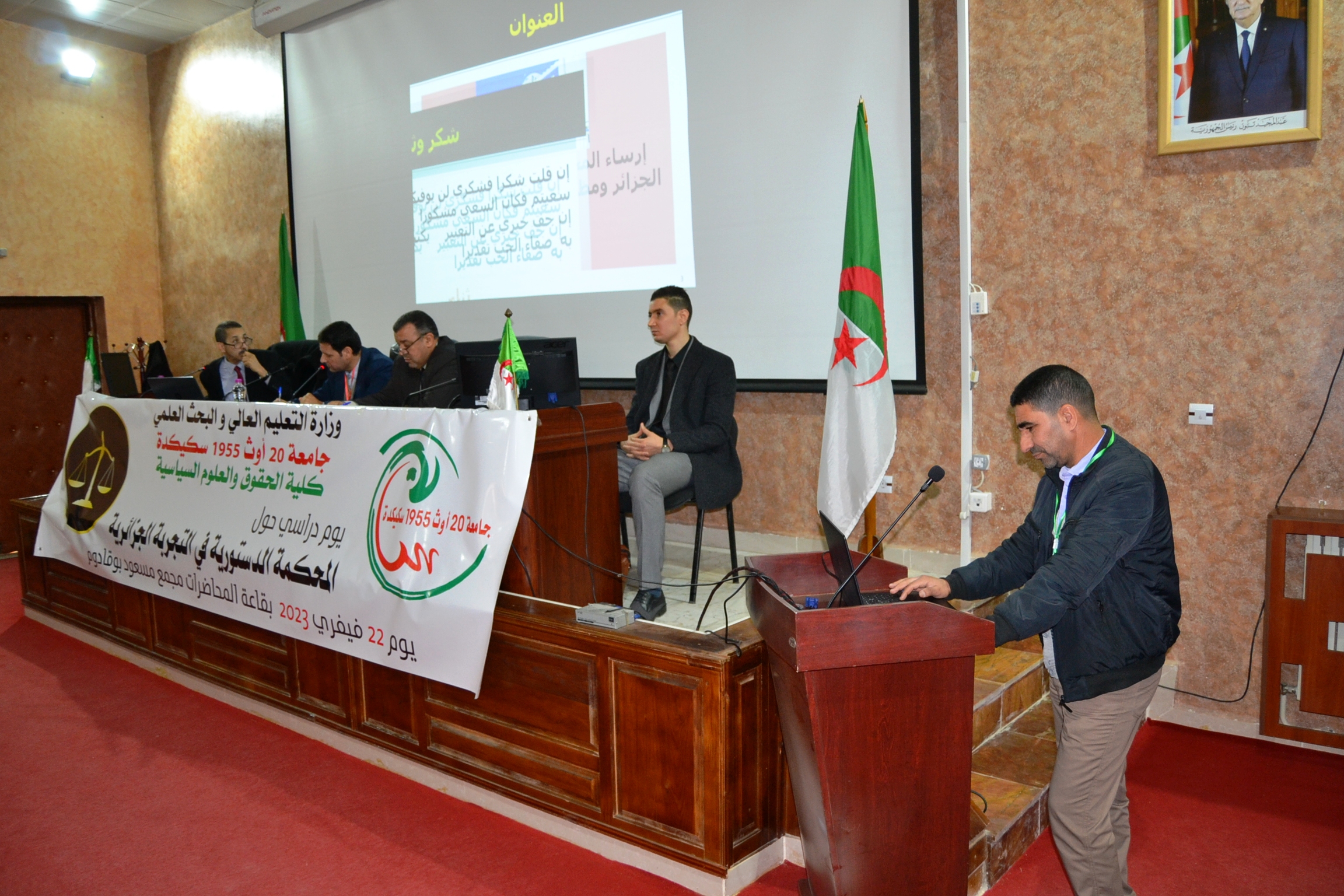 حول المحكمة الدستورية في التجربة الجزائرية احتضنت قاعة المحاضرات لمجمع مسعود بوقدوم بجامعة 20 أوت 1955 - سكيكدة يوما دراسيا نشطة نخبة من أساتذة القانون الدستوري و أعضاء بالمحكمة الدستورية كالبروفسور عمار بوضياف بمداخلة تحت عنوان المحكمة الدستورية و مظاهر التميز عن المجلس الدستوري و البروفسور محمد بوطرفاس بمداخلة موسومة المحكمة الدستورية قاضي الانتخابات دراسة تطبيقية إلى جانب الأستاذ عبد العزيز نويري رئيس غرفة سابق لمجلس الدولة الذي اثرى الاشغال بالتطرق الى تطور آلية الدفع بعد الدستورية من قانون العضوي 18-16 إلى القانون العضوي 22-19 .