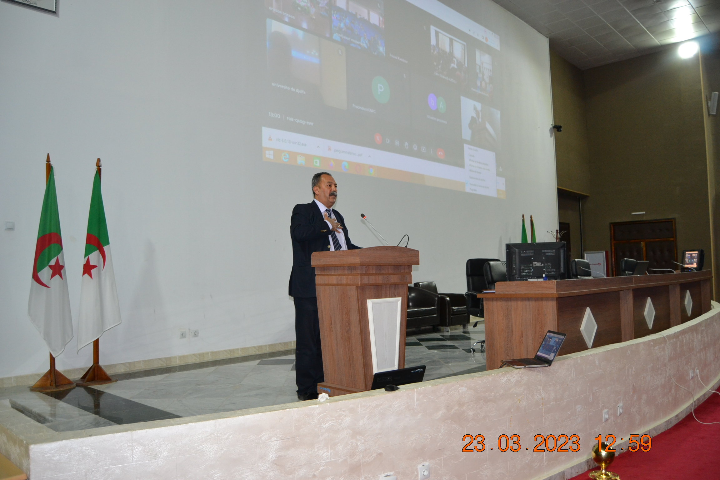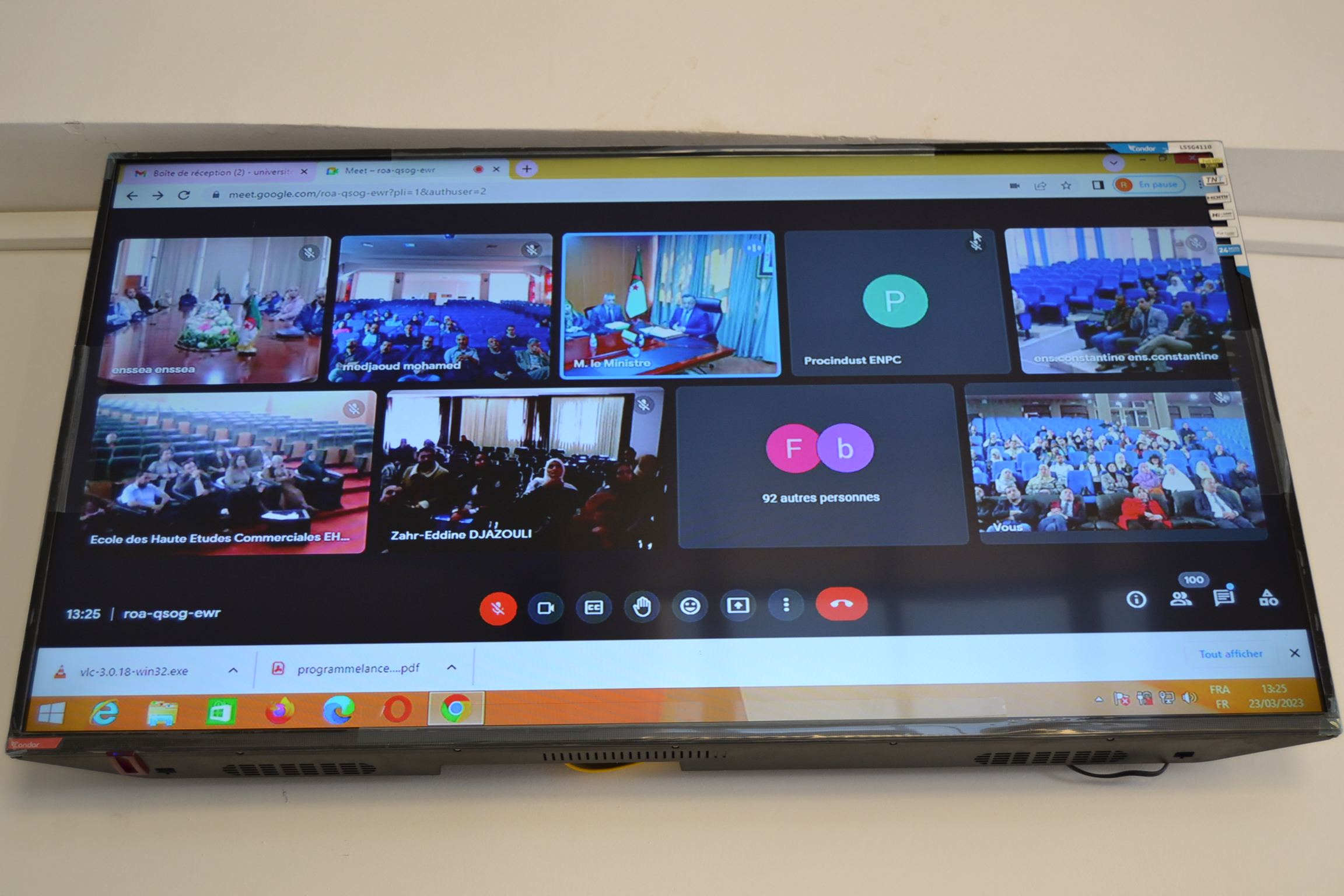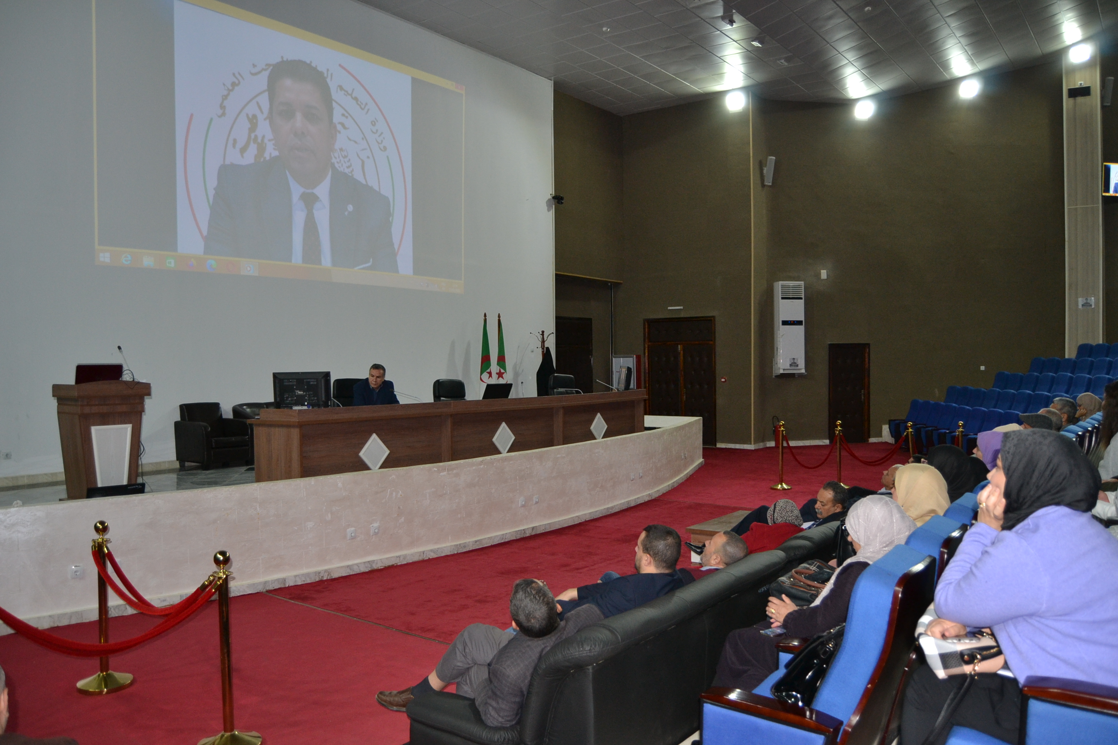 و عبر تقنية التحاضر ألقى معالي وزير التعليم العالي و البحث العلمي خطابا وضح فيه أهمية الورشات التي فتحها منذ التحاقه بالوزارة بهدف بناء منظومة تكوين عالي و بحث علمي و جعل الجامعة قاطرة للتنمية المحلية و الوطنية .